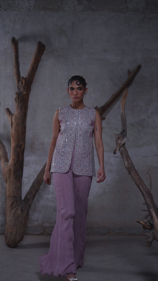 An organza embroidered jacket with crushed pants- (9541.1)