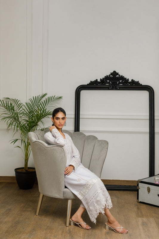 Off White Cotton Net Kurta (8328)