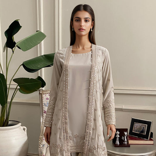 A jacket with an overlap wrap chiffon kurta- (8830)