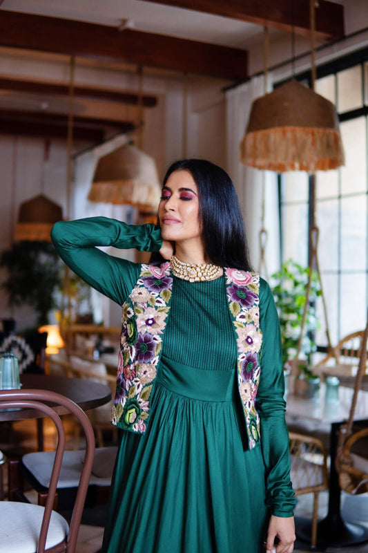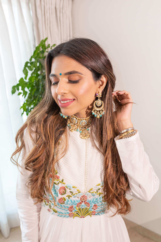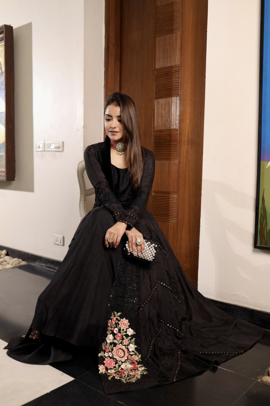 Anarkali suits trace their origin from the Mughal Era, however, even today, they continue to be a mainstay in our ethnic wear collection. Designer Anarkali dresses are the perfect Indian pieces for every festive occasion. Anarkali dress sets are seasonless and eternal and these magnificent pieces have been reinterpreted in stylish modern silhouettes, thereby being the most versatile ethnic wear. This regal outfit sets the ideal example of the amalgamation of traditional and designer wear. No bride’s trousseau is complete without a heavily embroidered Anarkali ensemble. Since Anarkali suits are fitted around the waistline with a voluminous flared bottom, it looks great on every body type. We, at Rozina, offer a gorgeous collection of silhouettes that are tailored in charming hues, elaborate gota patti work, ombre tones, Resham thread embroidery, elegant floral prints, monochromes, vivid prints, embellished and color-blocked to go perfectly with your distinct style. Designer Anarkalis are perfectly suited for all types of occasions. Our range compiles different types of Anarkali dress sets that come in varied fabrics, lengths, cuts and designs. Be it an Anarkali dress gown, a stylish Anarkali dress with a jacket or even a designer Anarkali suit, we have it all in our vault. If you are looking to wear something different on your wedding day instead of a lehenga, you can always try and change the custom by donning a stunning heavy Anarkali suit.Your bridal Anarkali dress for the wedding can include colors like maroon, red, pink or even gold. We offer Anarkali dresses for wedding receptions with lots of embroidery, embellishments and heavy work. So, now break the stereotypes and style your Anarkali dress for the wedding with a pair of red pumps and gold jewelry. A bindi and a maang teeka will take your outfit to a whole new level. Our Anarkali dress sets feature a luxurious base emphasised with intricate embellishment and embroidery in silk, zari, chiffon, georgette, etc. The surface embellishment is something that stands out as primaeval occasion wear with a touch of royalty. Made with flowy, fine fabrics like georgette and chiffon, our Anarkali suits make for an excellent outfit for special occasions. They are light, flawless and, easy to wear and carry. Pick out your favorite pieces from a wide range of the latest, trendiest designer Anarkali dresses online in stunning fabrics and styles. Our collection compiles designer Anarkali dresses that are fit for all occasions such as Anarkali dresses for weddings, party wear Anarkali dresses and whatnot. Whether you are looking for dresses for festivals, weddings, semi-formal dinners or even casual lunches, you just cannot go wrong with the elegant charm of an Anarkali suit teams up with juttis or pumps, and of course, jewelry is a given. Pick out your favorite Anarkali dress online today on our website.