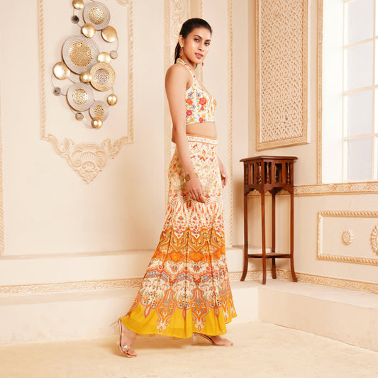 Printed Skirt with Embroidered Offset & Ruffled Dupatta (OA-60)