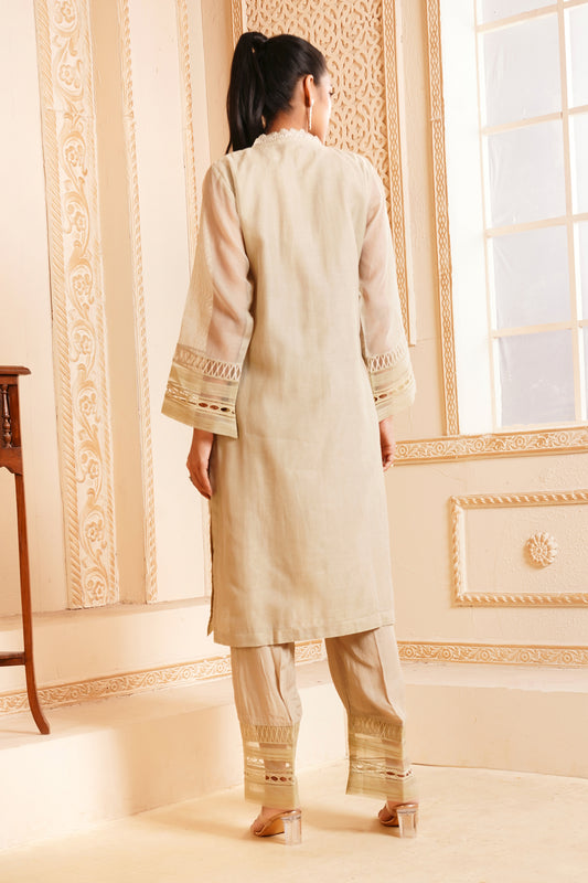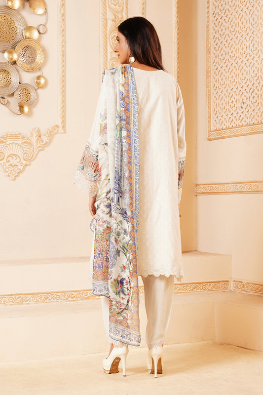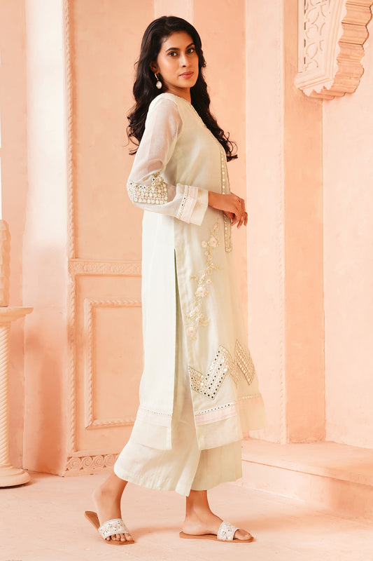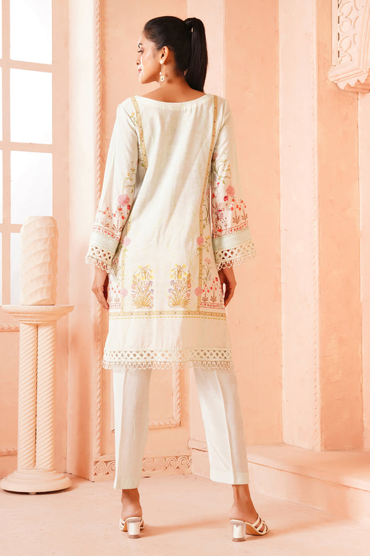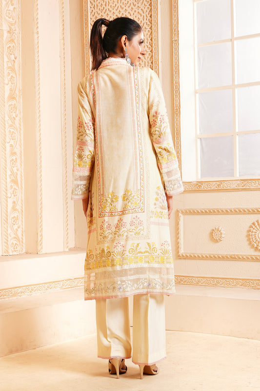 Off White Embroidered Kurta with Lime Green Pants & Dupatta (OA-80)