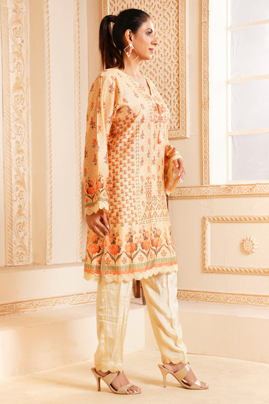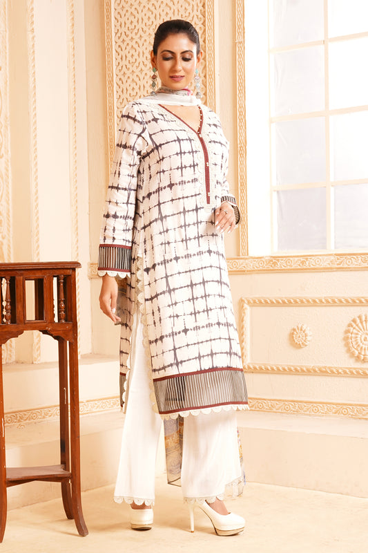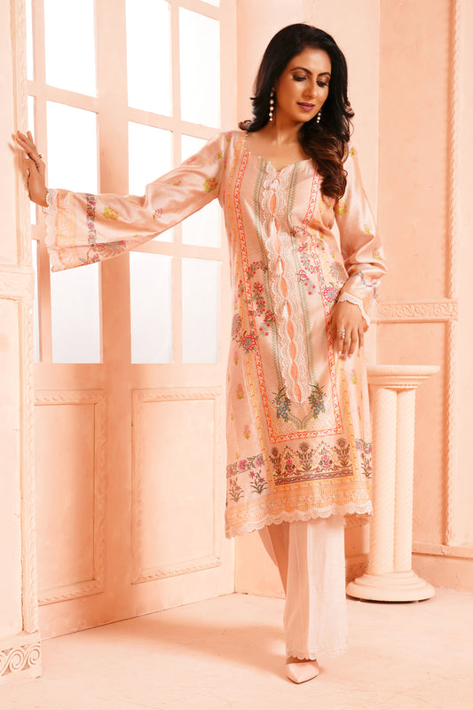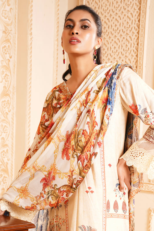 Printed Skirt with Embroidered Offset & Ruffled Dupatta (OA-60)