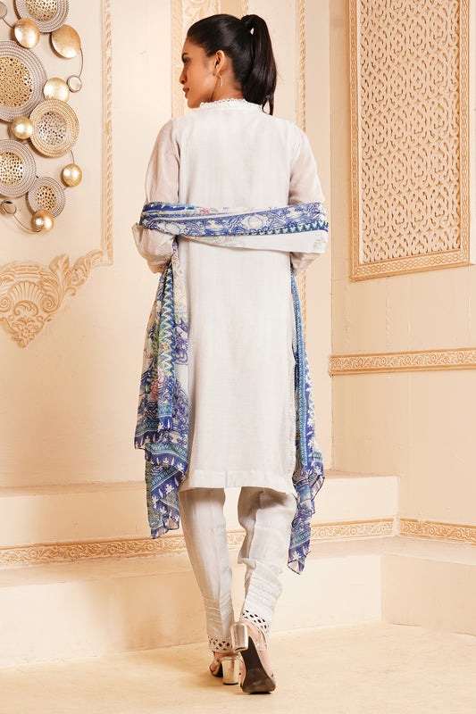 Serene Blue Embroidered Kurta with Pallazo & Dupatta (OA-68)