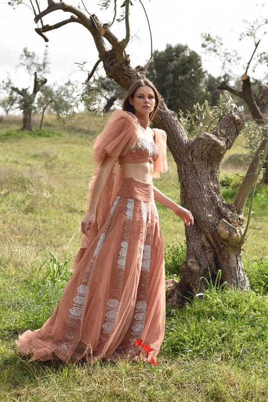 Peach Choli & Embroidered Ghagra with Ruffled Dupatta (OA-85)