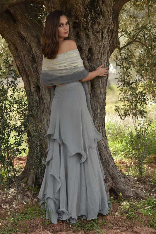Shimmer Blouse with Grey Ruffled Skirt & Dupatta (OA-69)