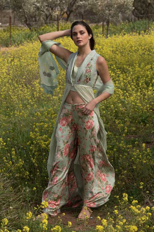 Pista Green Anarkali with Printed Palazzo Pant & Dupatta (OA-79)