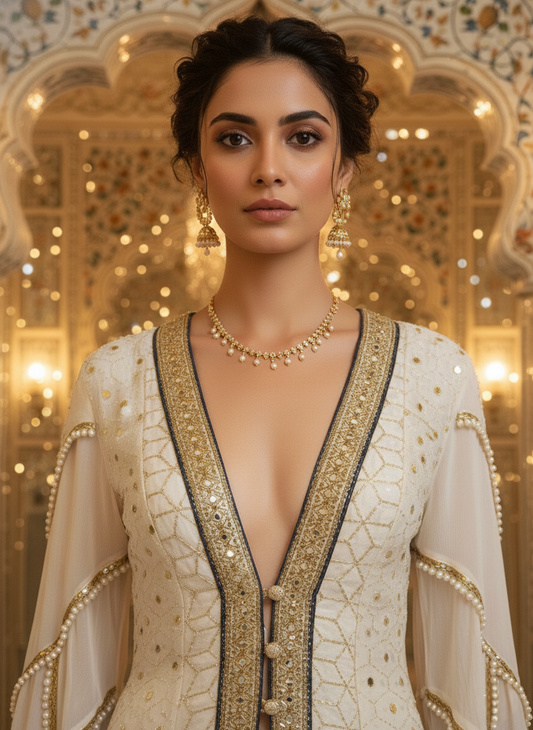 Ethnic wear is the easiest option that gives you plenty of room to play around and experiment with your look, particularly when you are dubious about what you should wear to a specific event. Our designer jacket tunics can either be paired up with all traditional or indo-western outfits.