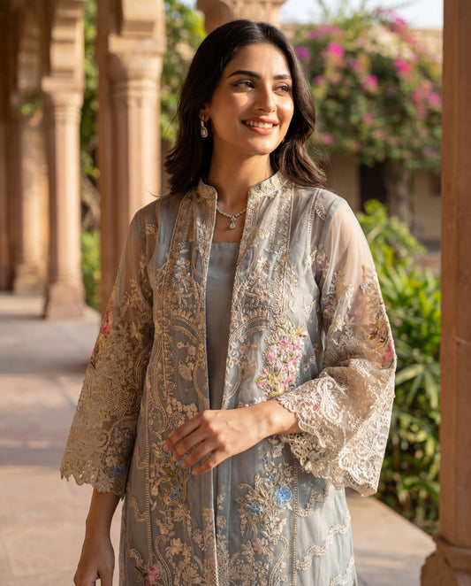 You are now in the imperial world of ethnic jackets for women that have quite literally blown off the fashion charts over the years. A fashionable revival of your favorite go-to outwears, short and long ethnic jackets are donned mainly with suits and lehengas. Anatomically, the length of ethnic jackets may differ from chest to floor lengths in order to curate a unique look. These extraordinary statement pieces have come to be known as the biggest saviors in terms of ethnic clothing for women. Not only are traditional jackets for women stunning but they come in such a huge variety that you are sure to get countless breathtaking options. At Rozinaa, our collection of the latest designer jackets for women gives you a wide array of choices of extravagant fabric, embroideries, tassel details, chic prints and designs to cater to women of all sizes, ages and shapes.