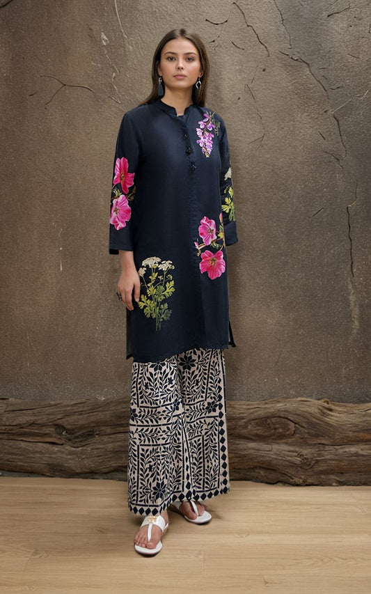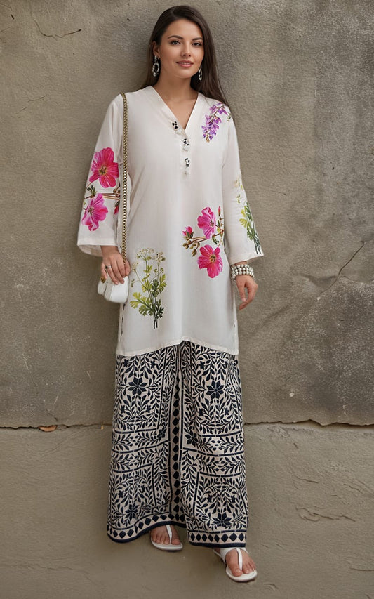 Embroidered blouse and printed palazzo (RV4704)