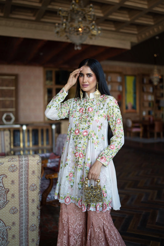 Off-White A-Line Kurta with Peach Pallazo Pants