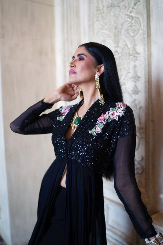 Floor Length Jacket with Silk Pants & Ruffle Dupatta (OA-84)
