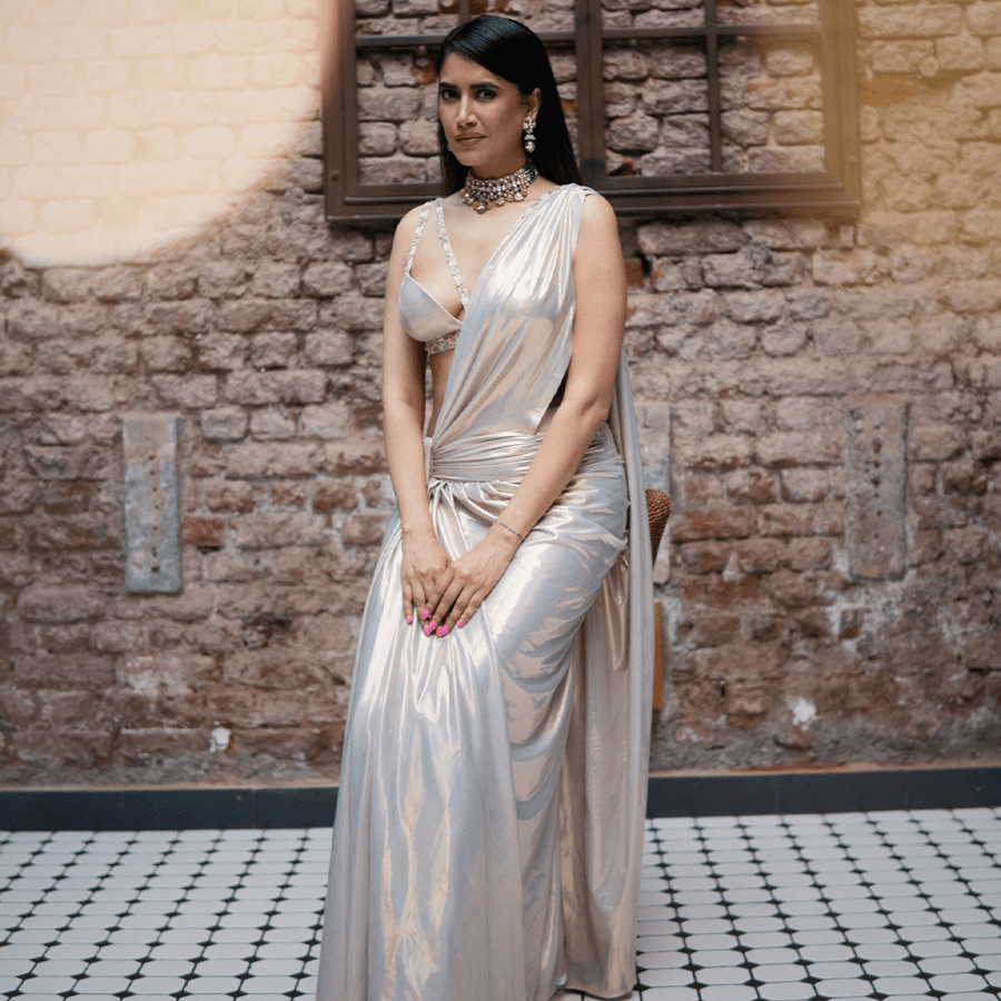 Taara Shimmery Blue Drape Sari (OA-2093)