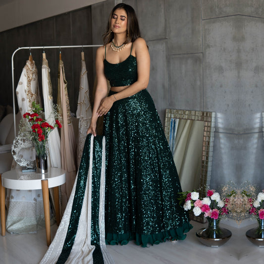 Green Choli & Ghagra with Off White Dupatta (OA-17)