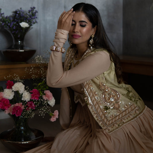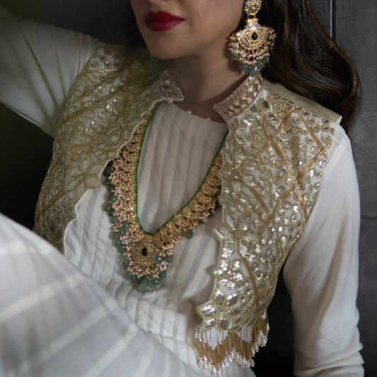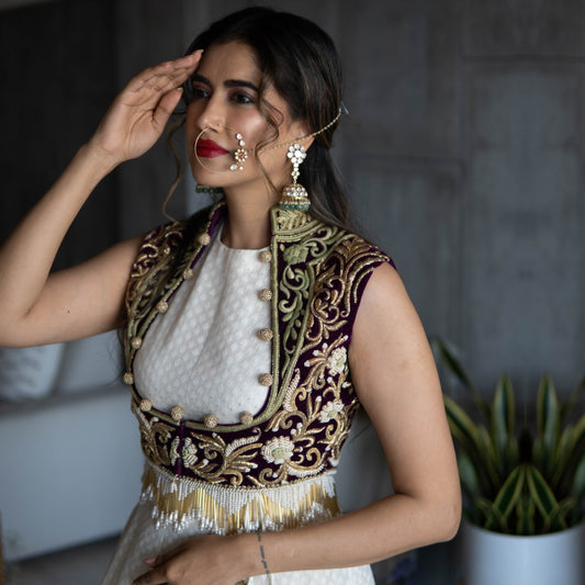 Off White Anarkali with Velvet Koti & Ruffled Dupatta (OA-20)