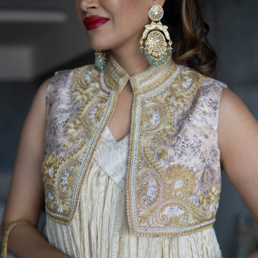 Off White Chanderi Anarkali with Koti & Ruffled Dupatta (OA-14)