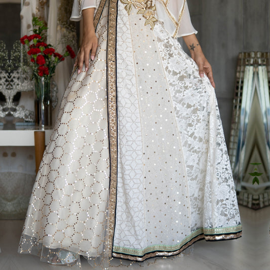 Off White Mukaish Kalidar Jacket with Skirt (OA-15)