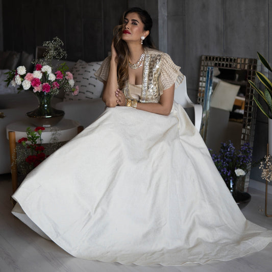Gold Crop Top with Of White Silk Skirt (OA-21)